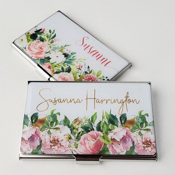 Personalized Business Card Case Pink Rose Flowers Business Etsy